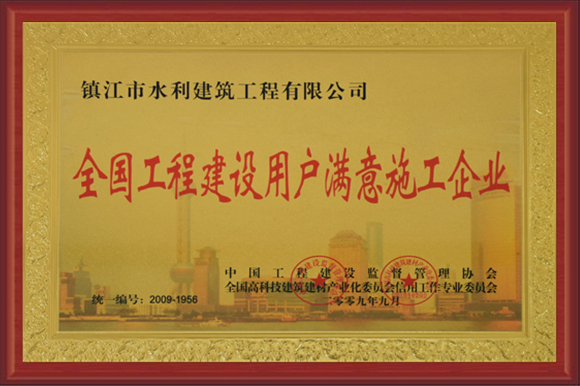 公司被評(píng)為重合同守信用企業(yè)、江蘇省水利安全生產(chǎn)標(biāo)準(zhǔn)化二級(jí)單位、AAA級(jí)資信企業(yè)、誠信示范企業(yè)、全國工程建設(shè)用戶滿意施工企業(yè)。